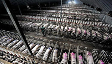 That sows are chained and cannot even turn or stand up.