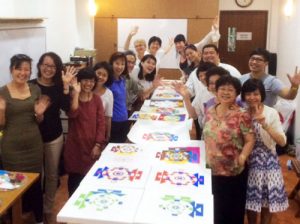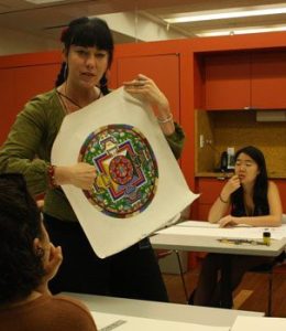 “We had a really fun five days, Carmen was really a dedicated teacher, it was amazing how we all didn’t really know what we were doing at first, but got guided through the process and we all ended up making nice stuff IMO. …We did a cool meditation every morning that was tied into the specific buddha that we were all drawing/painting. Carmen’s great – sincere, supportive, humble & enthusiastic.”