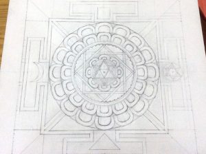 “Drawing the Buddha in such a special way touched me very deeply. Using a very precise grid and measurements, the initial process of simply drawing lines, or connecting one point to another, involves a lot of concentration and focus and then suddenly the magic: out of the paper the Buddha emerges. It is such a beautiful process to work in this way, and the Buddha reveals itself, almost while you are not looking.