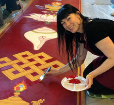Learn to draw these special symbols of prosperity according to the Tibetan tradition of thangka. For the visits of HH. The Dalai Lama (such as the ones in 2009, 2014 and 2018), Carmen was asked to paint large versions of these symbols to welcome the Dalai Lama in her home country The Netherlands. Symbols in a mandala/lotus shape or as separate drawings This course is offered to students on all levels -also those without any drawing experience. > Read more about the Eight Auspicious Symbols Thangka Art Course Ready to start your thangka journey? Prefer to wait for an online group course on drawing the Eight Auspicious Symbols? Rather join an in-person retreat with Carmen?