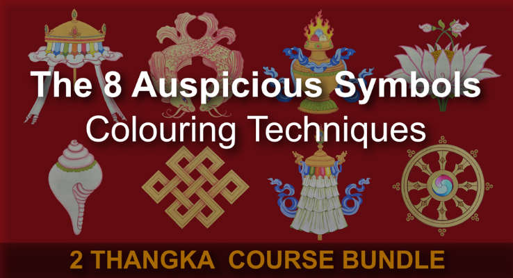 You can learn how to draw or paint the the Eight Auspicious Symbols during the annual Thangka Retreat Weeks in The Netherlands, Italy, Portugal and the USA.