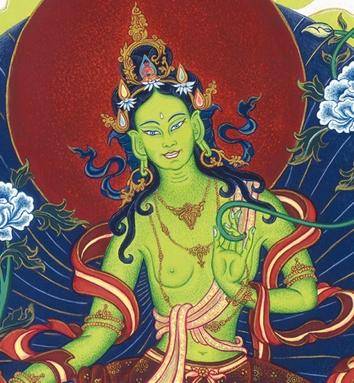 World-class Thangka artist/teacher, either for online courses or for in-person retreats. She offers a perfect fusion of art instruction with the culture and Dharma that inspires the art. Her inspirational instruction helped me create a 4’X4′ Eight Auspicious Symbols banner for our home.