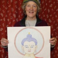 I’m so happy to attend this class and thanks for the teacher, Carmen, who is so kind and experience. I’m not good in drawing but realised what I dream. When I draw Buddha face, I think of all Buddha’s quality, visualise Buddha, then the grid then draw it. I read sometimes the mantra of Buddha Shakya Muni. When coloring, I can see better the independent origination, all the draw, color, one by one to make his appearance. Just relax the mind, think of Buddha’s quality, continue to color. The most dificult is how to show via the drawing Budha’s compassion and wisdom. Compassion I try to make his eyes, look upon beings with loving, kindness “I show you the path, it’s your choice to follow”. Then the wisdom, I try to make via the hallow, blue circle by making the following one zen tradition of painting circle, just draw circle, visualise of his wisdom raise. And Buddha has the 3 kayas, then the Nirmakaya, his appearance, Sambogakaya, his smile and the light, Dharmakaya in his wisdom appeare.