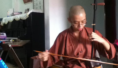 When I offered them some of my thangka cards they asked her to come to their living quarters at the top of the temple, where the elder nun urged me to sit down and urged the young nun to to show her musical skills to me. She played several traditional musical instruments and