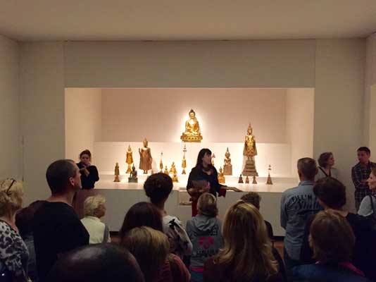 In the Buddha hall at the end of the exhibit, Buddha statues from all the different buddhist countries are brought together. Here I explain about the differences in iconography and style and how you can recognize Buddha statues from certain countries.