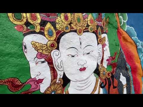 Watch the 6min video by Ven. Tenzin Michael of the incredible Amoghapasha painted on a more than 30 meters (over 100 feet) high cliff named Drak Karma above Lawudo in Nepal, where the painters had a hard time painting it in the cold and wind at such high altitude:
