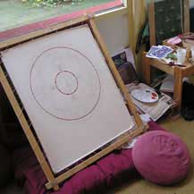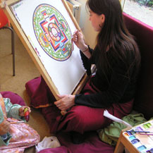 The pictures shown here depict the process of Carmen’s painting of the Mandala of Chenrezig (Avalokiteshvara in Sanskrit), the Buddha of Compassion